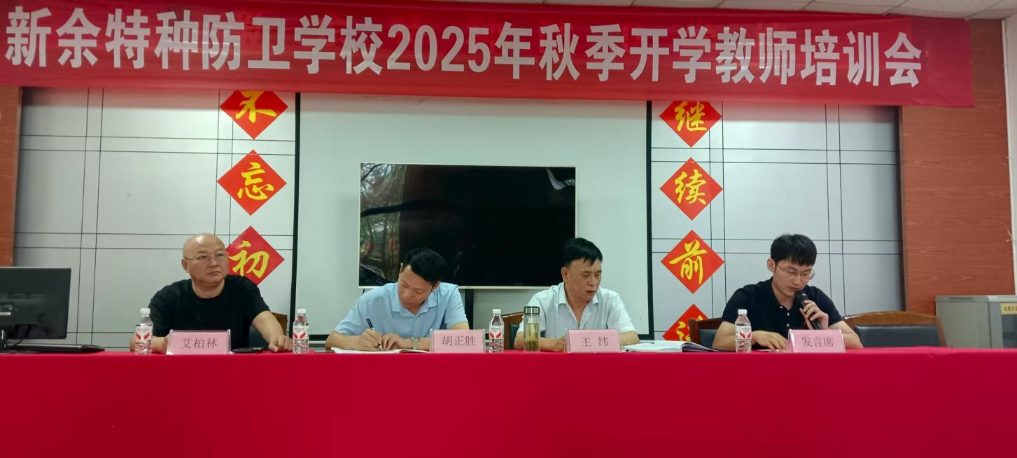 2025年8月31日上午,新余特种防卫学校新学期教师培训会在热烈的氛围中举行。本次会议由常务副校长王纬同志主持,旨在明确新学期工作思路,细化任务分工,凝聚全体教师共识,为高质量开启新学期奠定坚实基础。全体教职工满怀热情与期待参加了会议。